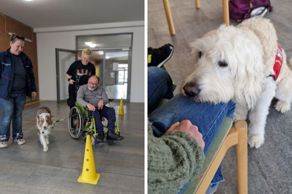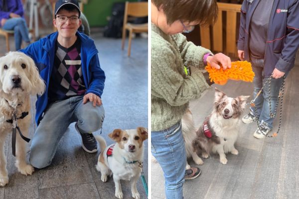 Neben Informationen zu Verhalten und Bedürfnissen der Tiere konnten die Teilnehmenden die Hunde streicheln, einfache Übungen ausprobieren sowie kleine Spiele und Bewegungsangebote erleben. Ziel war es, zur aktiven Teilnahme zu motivieren und den Zugang zu den Tieren auf eine niederschwellige und positive Weise zu ermöglichen.